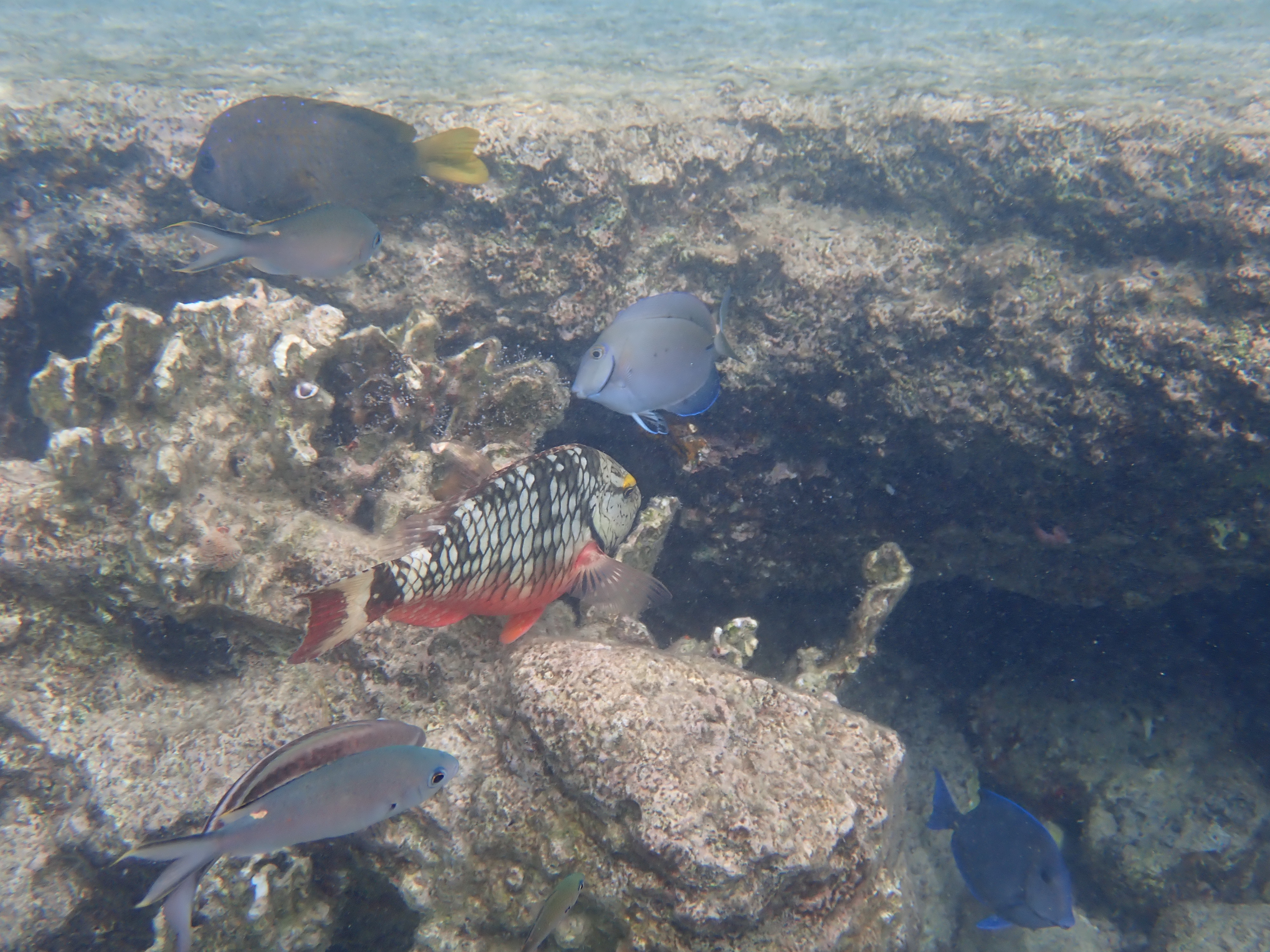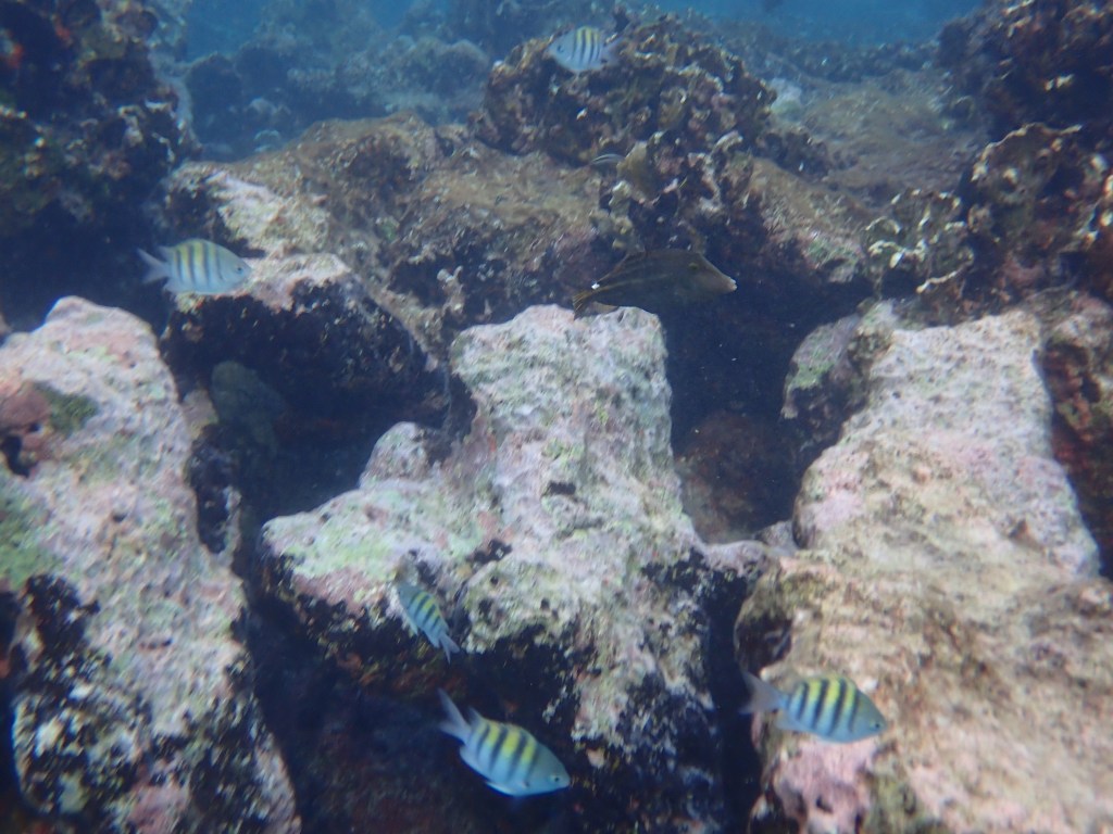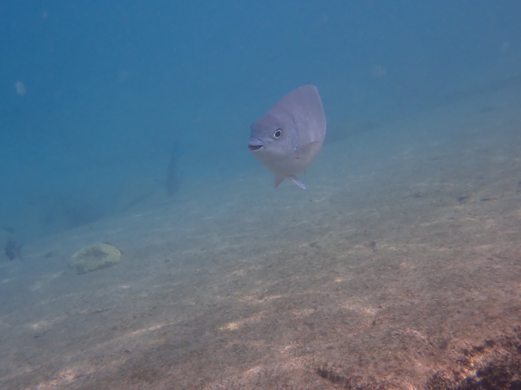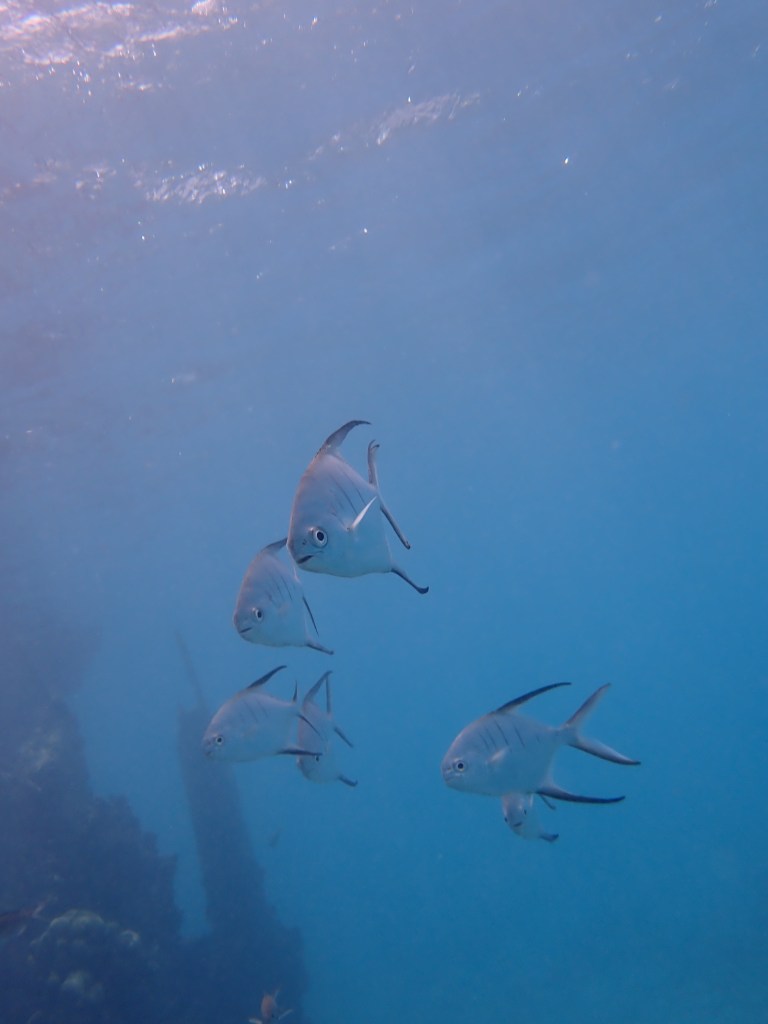 Actually, I found the fish hilarious. They were definitely accustomed to snorkelers, and acted more curious than frighted. I acquired a school of palometas that seemed confused by me being below them.