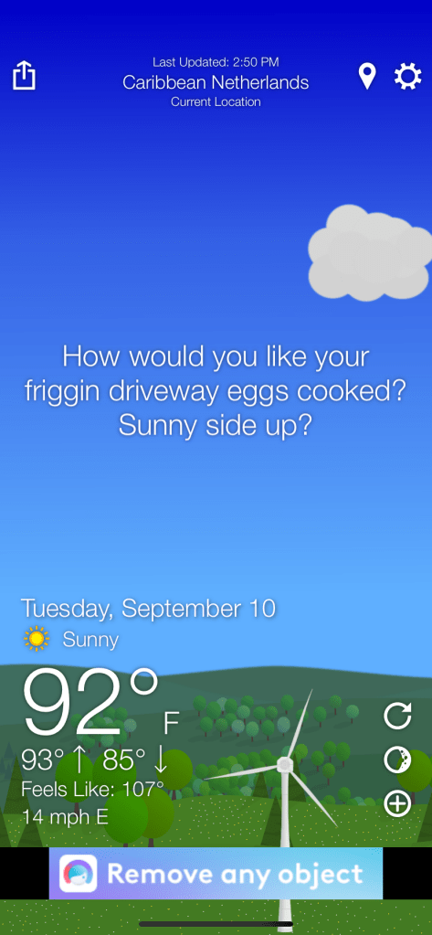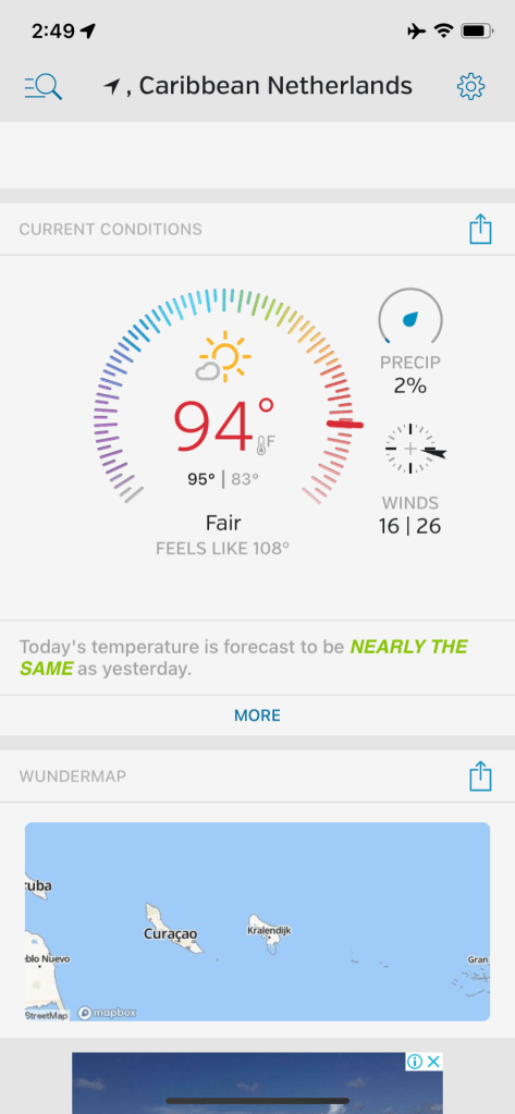 This was my first time in Bonaire regularly using the airco! Airco, for those used to central or window air conditioning, is mounted on the upper wall of the bedroom and usually used to cool a room for sleeping. The rest of the dwelling is usually open and uncooled, at least in less-Americanized places. I actually love this arrangement, and when I’m on the islands in winter, I rarely use it and rely on the ocean breezes through windows and open doors. But September was a whole ‘nother kettle of fish. I used it every night, and by the end of the trip, even used it for an afternoon siesta.